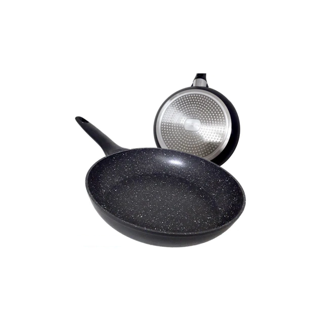 Sartén circular de 28 cm de diámetro. Base de alto espesor. La base de alto espesor permite una cocción más uniforme de los alimentos. Durastone revestimiento. El revestimiento Durastone antiadherente no contiene PFOA, por lo tanto es seguro y está garantizado y es resistente a altas temperaturas (260°C) en todas las placas, incluída la inducción. Apta para todo tipo de cocina. Toda la línea Maorí de Pedrini se puede utilizar para todos los niveles de cocción, incluída la inducción.